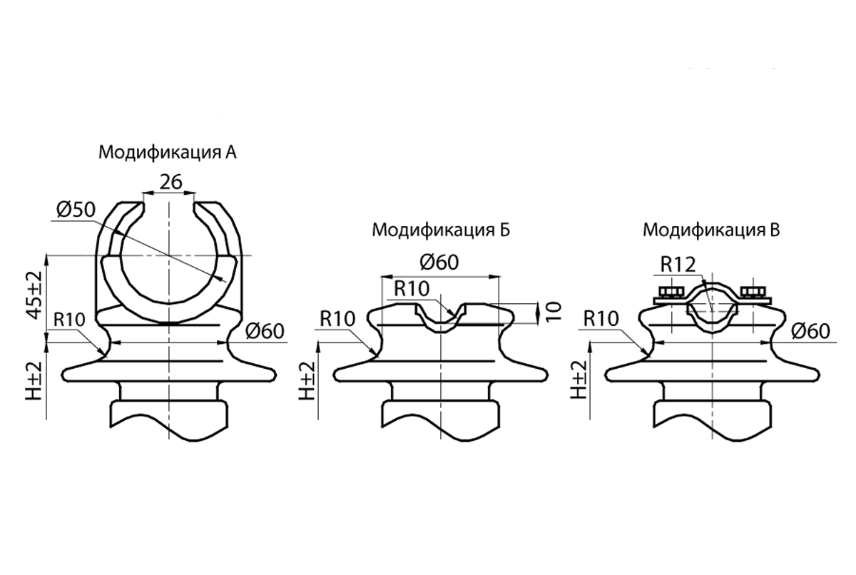 Провод может быть закреплен в желобе или на шейке изолятора. Монтируются на стандартных штырях с использованием колпачков типа «К» и «КП».