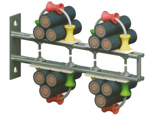 Предназначен для крепления одножильного кабеля в треугольник диаметром от 25 мм до 81 мм, а также одножильного кабеля пофазно и многожильного кабеля в плоскости диаметром от 50 мм до 84 мм. Благодаря диэлектрическим втулкам электромагнитный контур разомкнут.Электродинамическая стойкость 75,2 кА*
