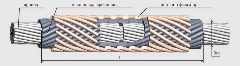 Зажимы ремонтные спиральные типа РС-8,4-01 (ТУ-3449-031-27560230-06) предназначены для ремонта сталеалюминиевых проводов АС 35/6,2 при повреждении до 34% алюминиевых проволок и неповрежденном стальном сердечнике. При этом зона повреждения провода (троса) не должна располагаться ближе 1,5 м от места крепления провода.