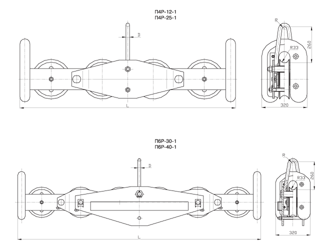 | сталеалюминиевых проводов | стальных канатов по ГОСТ 3063 | D | L | R | |||