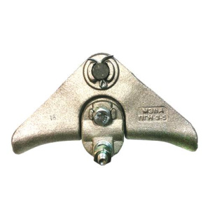 Зажим поддерживающий ПГН-3-5 предназначен для крепления проводов и молниезащитных тросов к изолирующим подвескам, а также для крепления молниезащитных тросов непосредственно к промежуточным опорам. Лодочка и плашка зажима изготавливаются из алюминевых сплавов.Производится по ТУ 3449-001-52819896-2010.