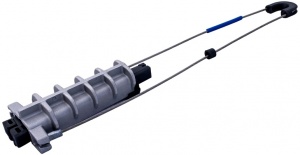 Корпус зажима выполнен из алюминиевого сплава, клинья — из устойчивой к ультрафиолетовым излучениям пластмассы. Зажим DR-1600 применяется для выполнения анкерного крепления несущего проводника или анкерного крепления самонесущего оптического кабеля. При монтаже оптический кабель (несущий провод СИП) закладывается в зажим между клиньями и зажимается.характеристики DR-1600-420