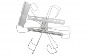 Предназначено для хранения запаса подвесного оптического кабеля. Рекомендуется для установки на опорах ЛЭП (до 20 кВ), городского электрохозяйства (уличного освещения, наземного электротранспорта). Ось катушки фиксируется на кронштейне, который устанавливается на опору. Намотка кабеля осуществляется вращением катушки вместе с муфтой. Муфта крепится на специально установленный кронштейн. Устройство выполнено из стального прутка, благодаря чему имеет значительно меньший вес и повышенную жесткость конструкции по сравнению с аналогами.| Макс. длина запаса ВОК (D=11,5 мм), м | 146 |