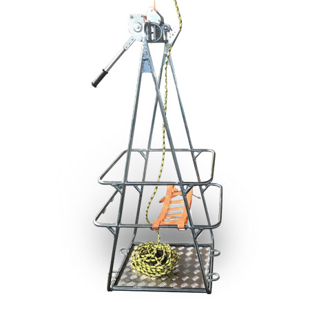 Устойство подвешивается ленточным стропом подъёмно-спускового механизма через специальные захваты, входящие в комплект поставки, к траверсе.