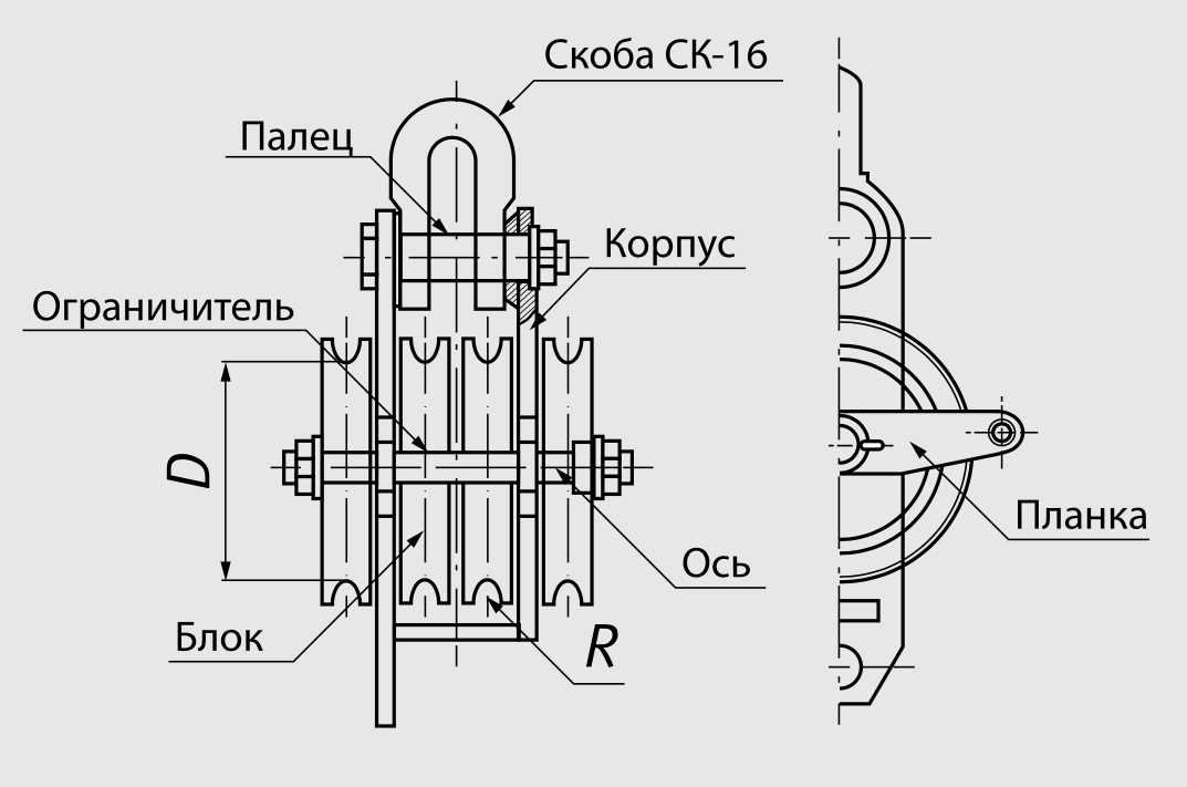 Блок полиспастный БП-30 комплектуется скобой СК-12-1А.Блок полиспастный БП-50, БП-80 комплектуется скобой СК-16-1А.