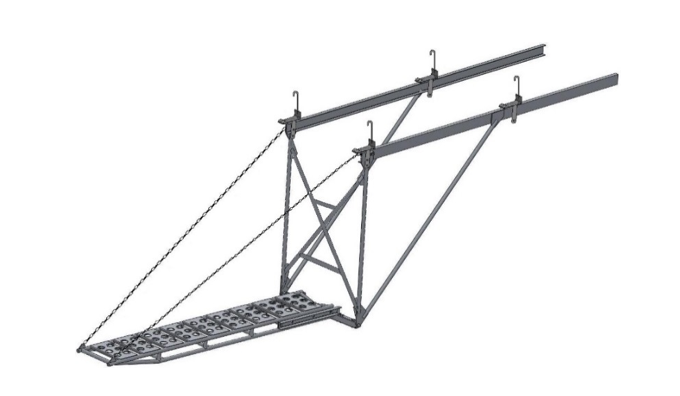 Такелажные точки выполнены в виде скоб, располагающихся на двух рамах, за которые заводится канат, и трап поднимается на место установки.