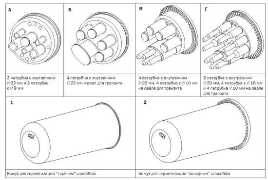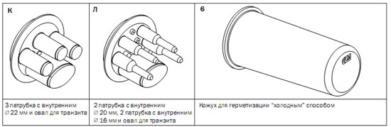 ** При необходимости с помощью комплектов №6 или №9 в овальные патрубки муфт типа МТОК можно ввести два отдельных ОК.