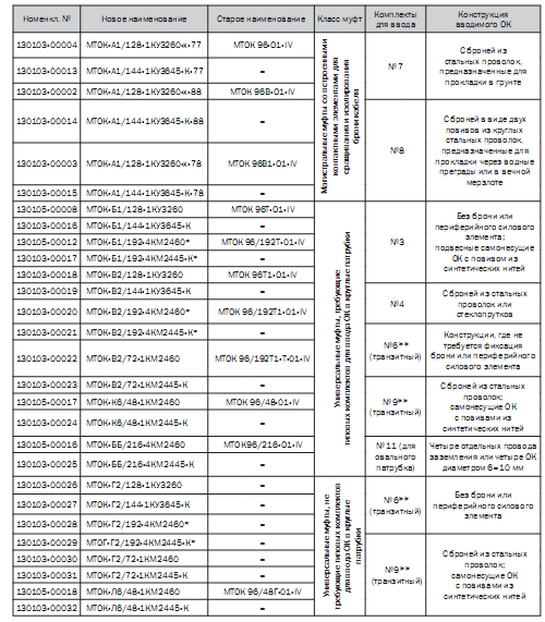 Таблица соответствия новых и старых наименований муфт типа МТОК